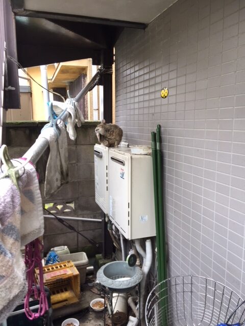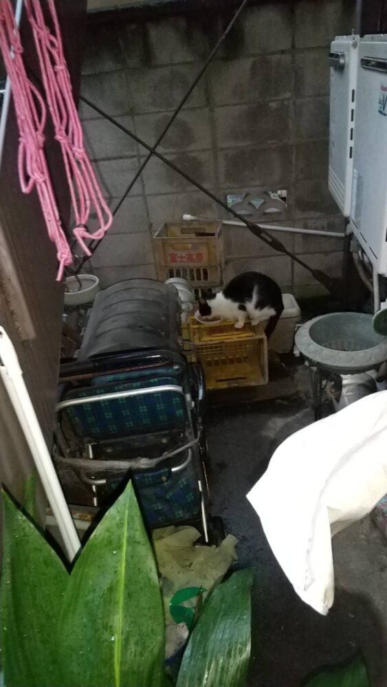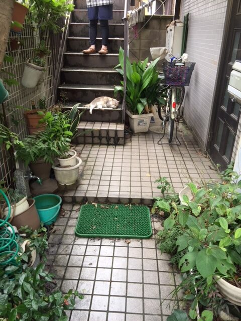 猫の居場所になっている外階段下のスペースに通じる道ですから、