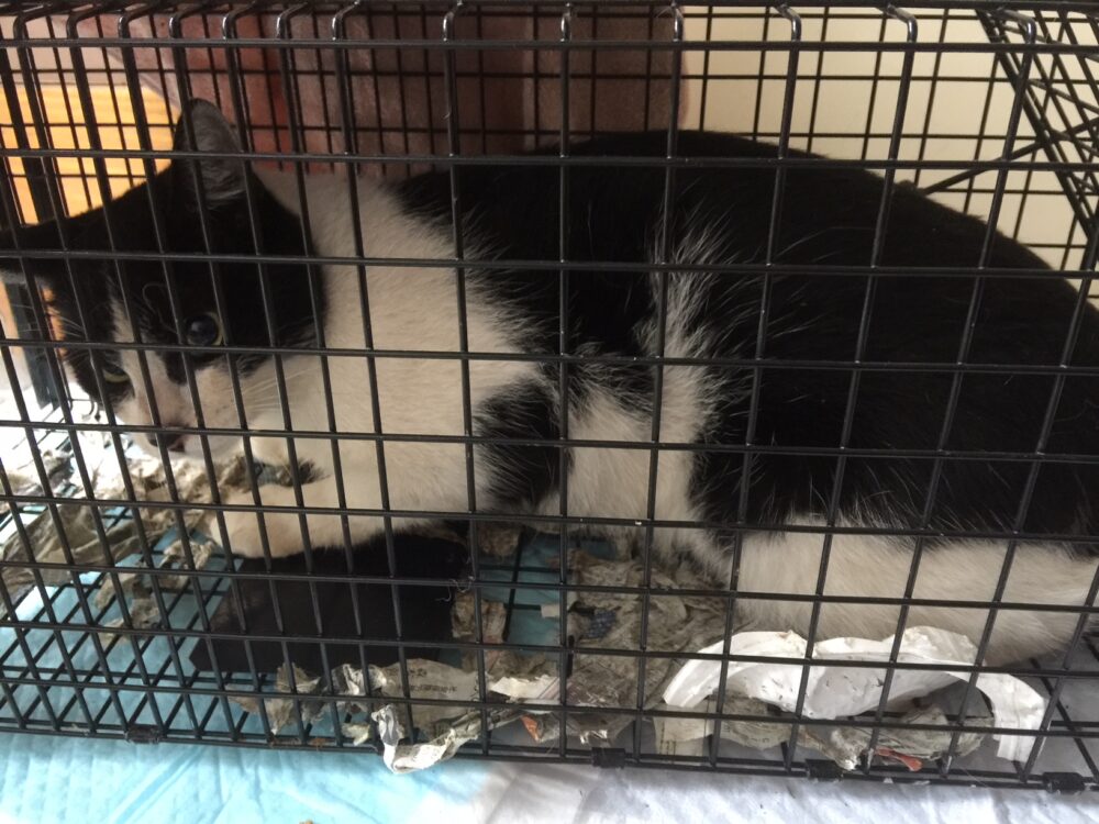2匹目の猫「カミュ」は、正午過ぎに捕獲器に入りました。