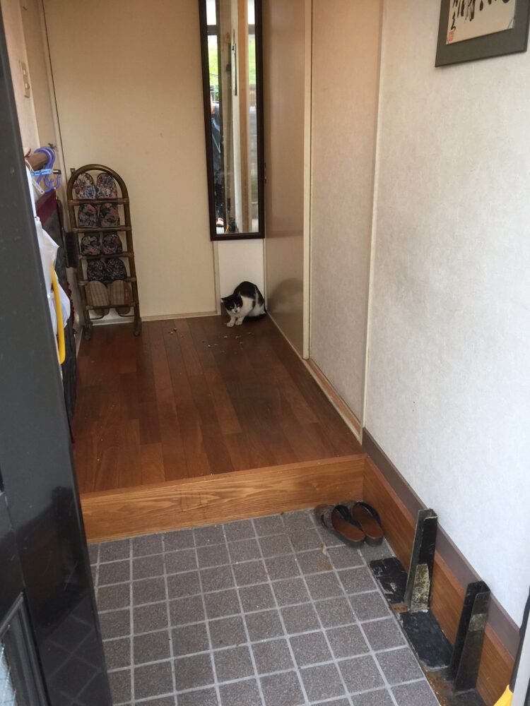 私が捕獲器の様子を見に行くと、必ず玄関から出てきて、